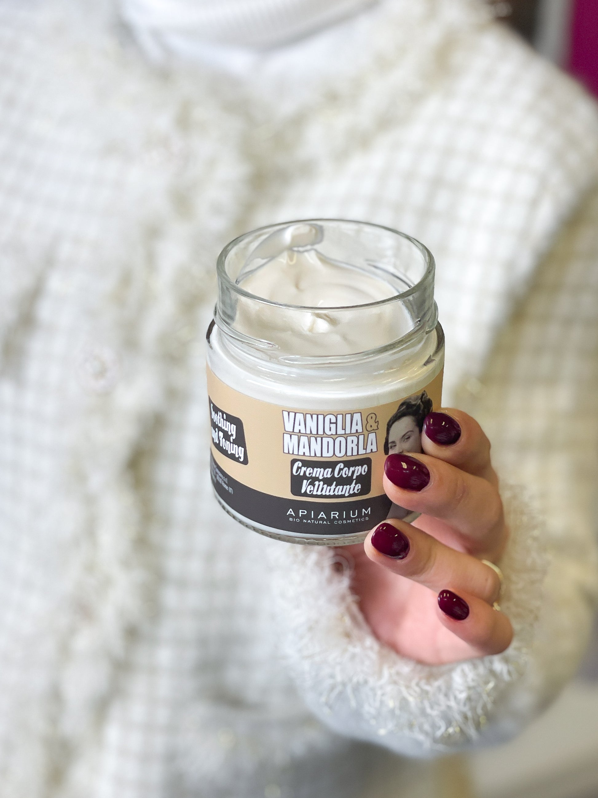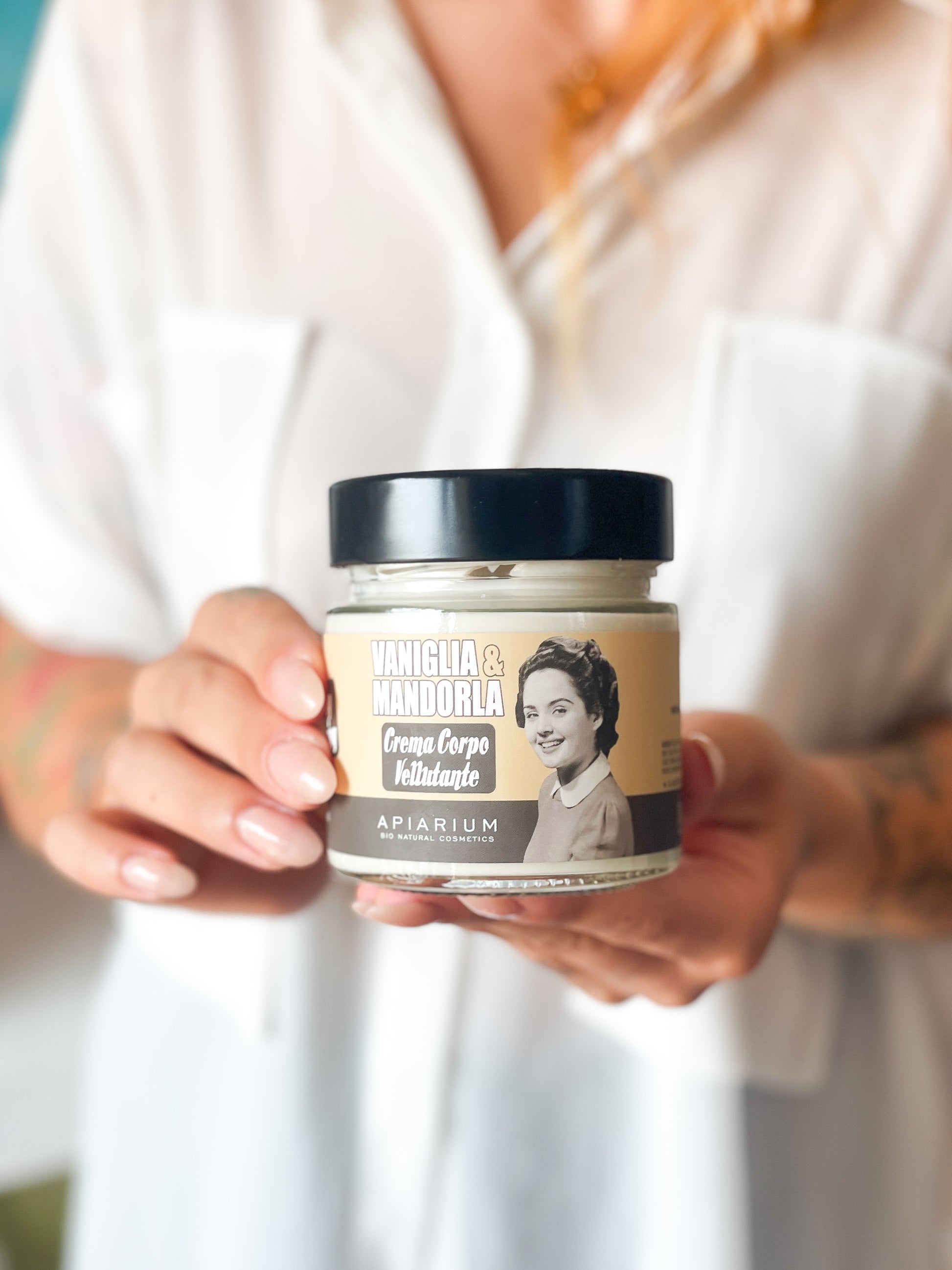 Regala al corpo tonicità ed elasticità grazie alla presenza di Burro di karitè, Miele, Aloe, estratti di Calendula, Olio di Mandorle Dolci ed Olio essenziale di Vaniglia che avvolgono la pelle in una sensazione di totale benessere e rilassamento. La presenza di Miele aiuta le pelli più sensibili a prevenire antiestetici rilassamenti cutanei, rendendo la pelle morbida e vellutata.