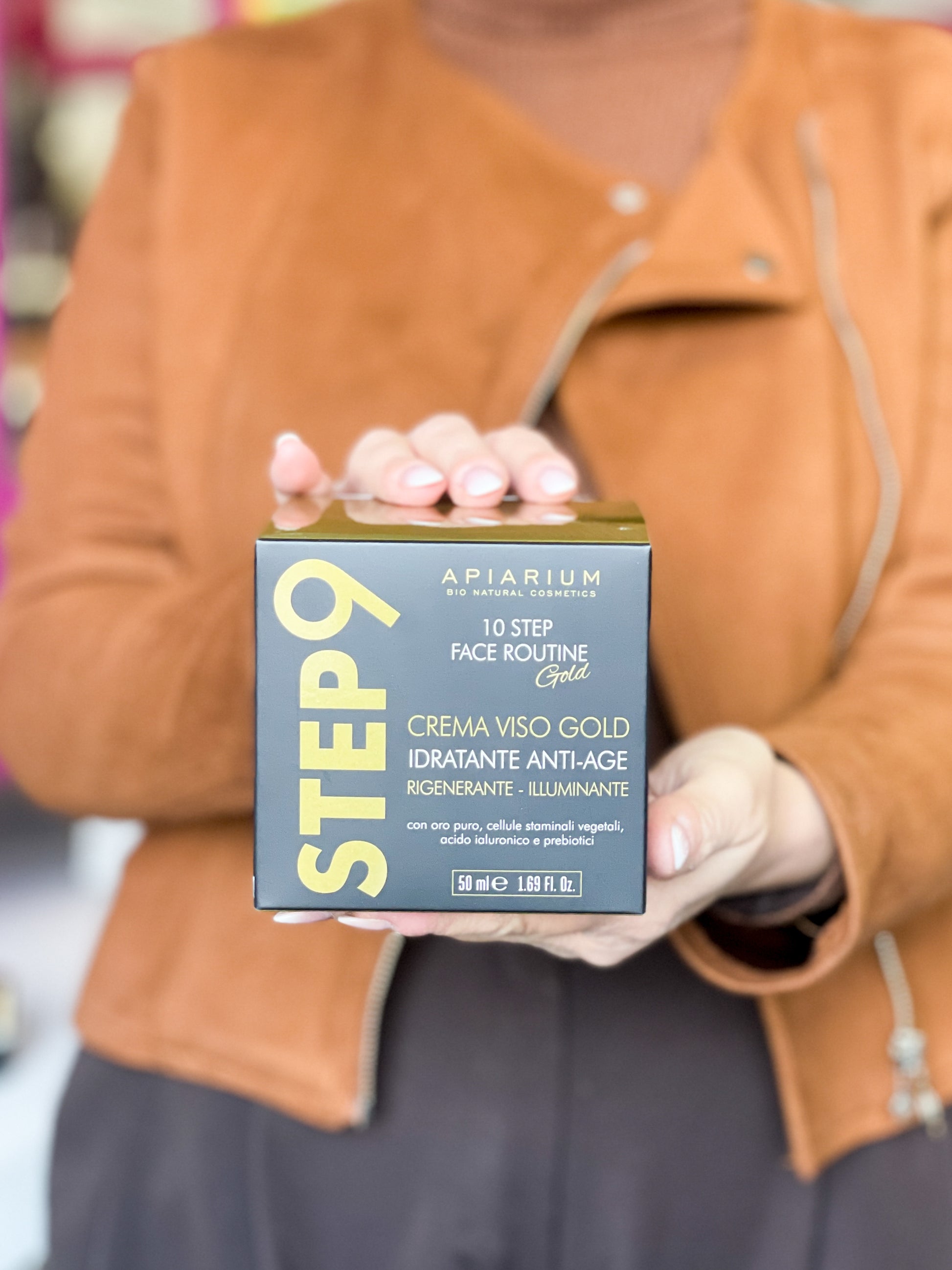 Inci: AQUA (WATER), GLYCERIN*, CETEARYL ALCOHOL, CAPRYLIC/CAPRIC TRIGLYCERIDE, ISOAMYL COCOATE, TRITICUM VULGARE (WHEAT) GERM OIL, CETEARYL GLUCOSIDE, STEARIC ACID, NIACINAMIDE, HYDROGENATED OLIVE OIL UNSAPONIFIABLES, HYDROGENATED ETHYLHEXYL OLIVATE, HYDROLYZED TOMATO SKIN, SACCHARIDE ISOMERATE, STEARYL ALCOHOL, CETYL ALCOHOL, TOCOPHERYL ACETATE, OLIVE GLYCERIDES, OPUNTIA FICUS-INDICA STEM EXTRACT, PERSEA GRATISSIMA (AVOCADO) OIL, BETAINE, SIMMONDSIA CHINENSIS (JOJOBA) SEED OIL, PRUNUS CERASUS FLOWER EXTRACT, CRATAEGUS OXYACANTHA EXTRACT, CERAMIDE NP, CUCURBITA PEPO (PUMPKIN) SEED OIL, VITIS VINIFERA (GRAPE) SEED OIL, LYCIUM BARBARUM FRUIT EXTRACT, GLYCOPROTEINS, GLUTAMIC ACID, LACTOCOCCUS FERMENT LYSATE, SODIUM HYALURONATEˇ, VALINE, CITRIC ACID, GOLD, THREONINE, CAPRYLIC/CAPRIC TRIGLYCERIDES, LECITHIN, RAPHANUS SATIVUS (RADISH) SPROUT EXTRACT, CAPRYLYL/CAPRYL GLUCOSIDE, LEUCONOSTOC/RADISH ROOT FERMENT FILTRATE, PALMITOYL TRIPEPTIDE-5, APIUM GRAVEOLENS (CELERY) CALLUS EXTRACT, XANTHAN GUM, ETHYLHEXYLGLYCERIN, TETRASODIUM GLUTAMATE DIACETATE, SODIUM METABISULFITE, PARFUM (FRAGRANCE), SODIUM CHLORIDE, SODIUM CITRATE, PHENOXYETHANOL, HYDROXYCITRONELLAL, LINALOOL, COUMARIN, SODIUM BENZOATE, LACTIC ACID, POTASSIUM SORBATE, BENZYL ALCOHOL. = DA AGRICOLTURA BIOLOGICA CERTIFICATA / ORGANIC INGREDIENTS / INGRÉDIENTS ISSUS DE L'AGRICULTURE BIOLOGIQUE / DE LA AGRICULTURA ORGÁNICA CERTIFICADA * = DI DERIVAZIONE VEGETALE NO OGM / PLANT ORIGIN NO GMO/ D’ORIGINE VÉGÉTALE NON OGM / DERIVADO VEGETAL NO OGM ˇ=DI ORIGINE BIOTECNOLOGICA / BIOTECHNOLOGICALORIGIN / ORIGINE BIOTECHNOLOGIQUE / DE ORIGEN BIOTECNOLÓGICO
