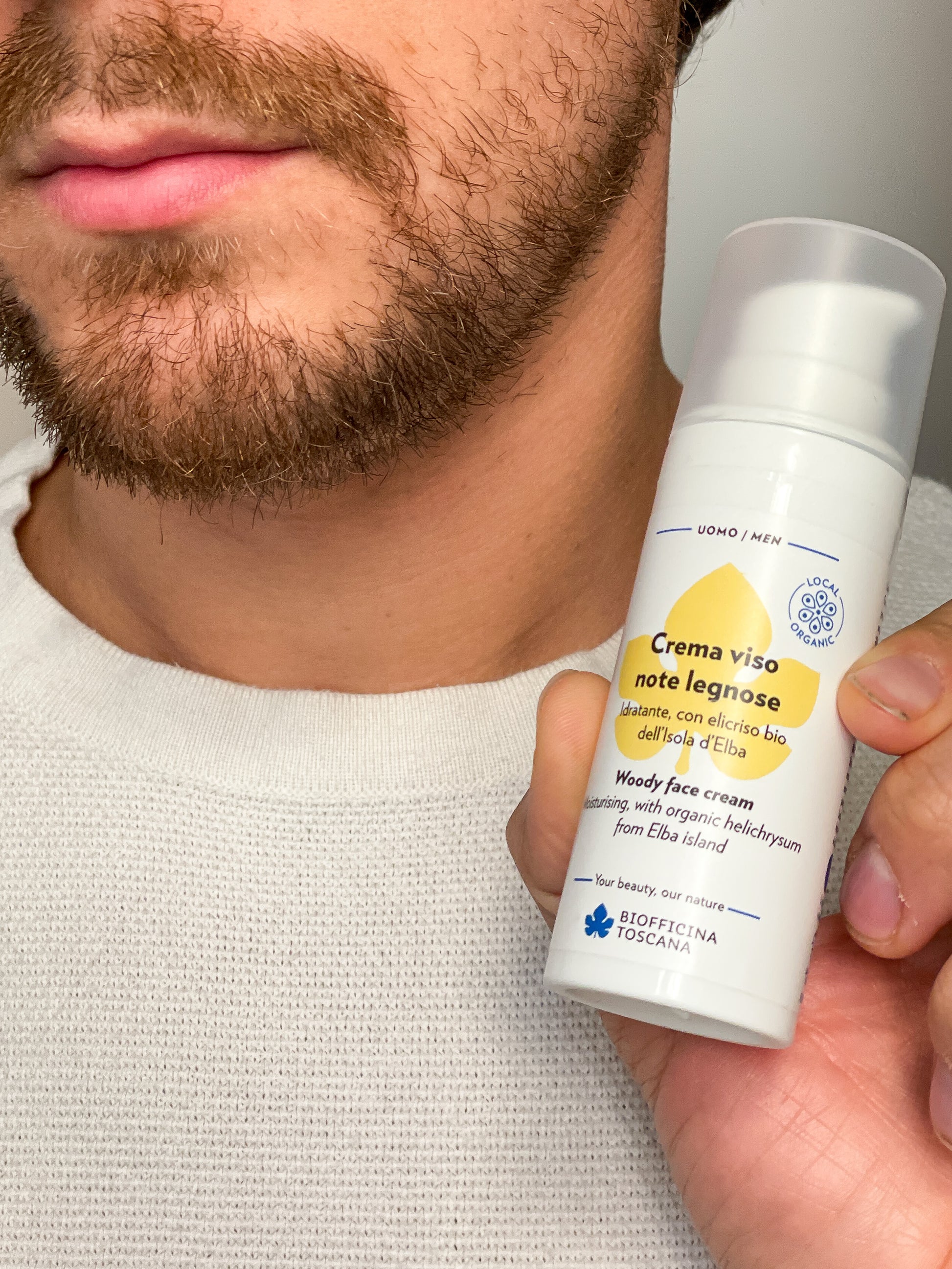 Una crema viso pensata per la pelle dell’uomo. Contiene estratto bio di elicriso toscano con proprietà dermopurificanti, protettive e riparative. L’elicriso agisce con gli estratti bio lenitivi di passiflora, malva, calendula e con l’olio extravergine di oliva “Toscano IGP” bio dalle proprietà antiossidanti, emollienti e restitutive potenziate dalla presenza di squalano e vitamine. Una sinergia naturale per una crema ricca ma leggera che lascia sulla pelle un intenso aroma legnoso.