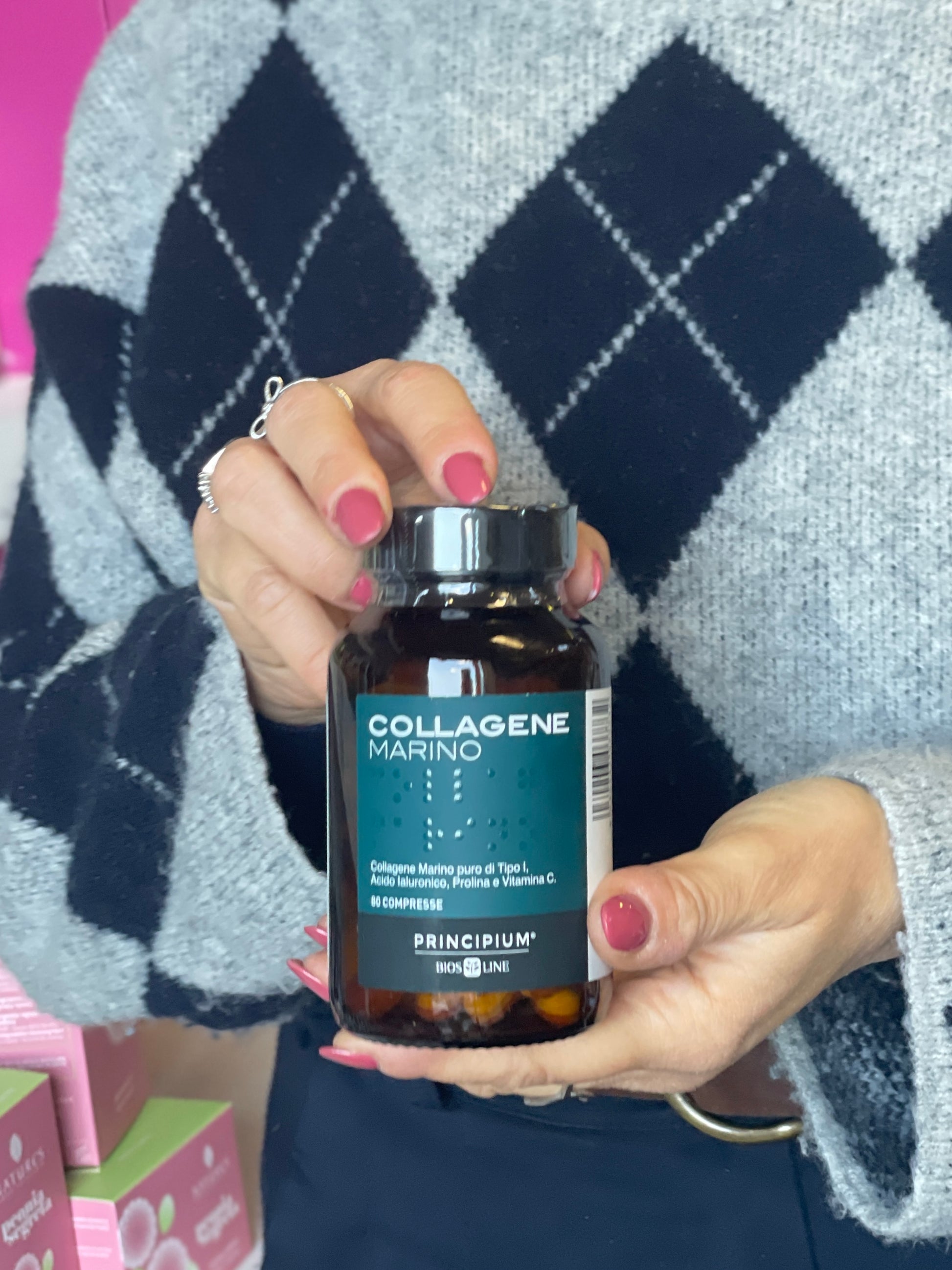 Principium Collagene Marino è un integratore alimentare che, grazie all’associazione di Collagene Marino di tipo 1 e Prolina, aiuta a migliorare l’elasticità della pelle, a ridefinire i contorni del viso e attenuare la visibilità delle rughe, conferendo al volto un aspetto più fresco e luminoso. La formula è arricchita da Acido Ialuronico a basso peso molecolare e Vitamina C, che contribuisce alla sintesi del collagene.