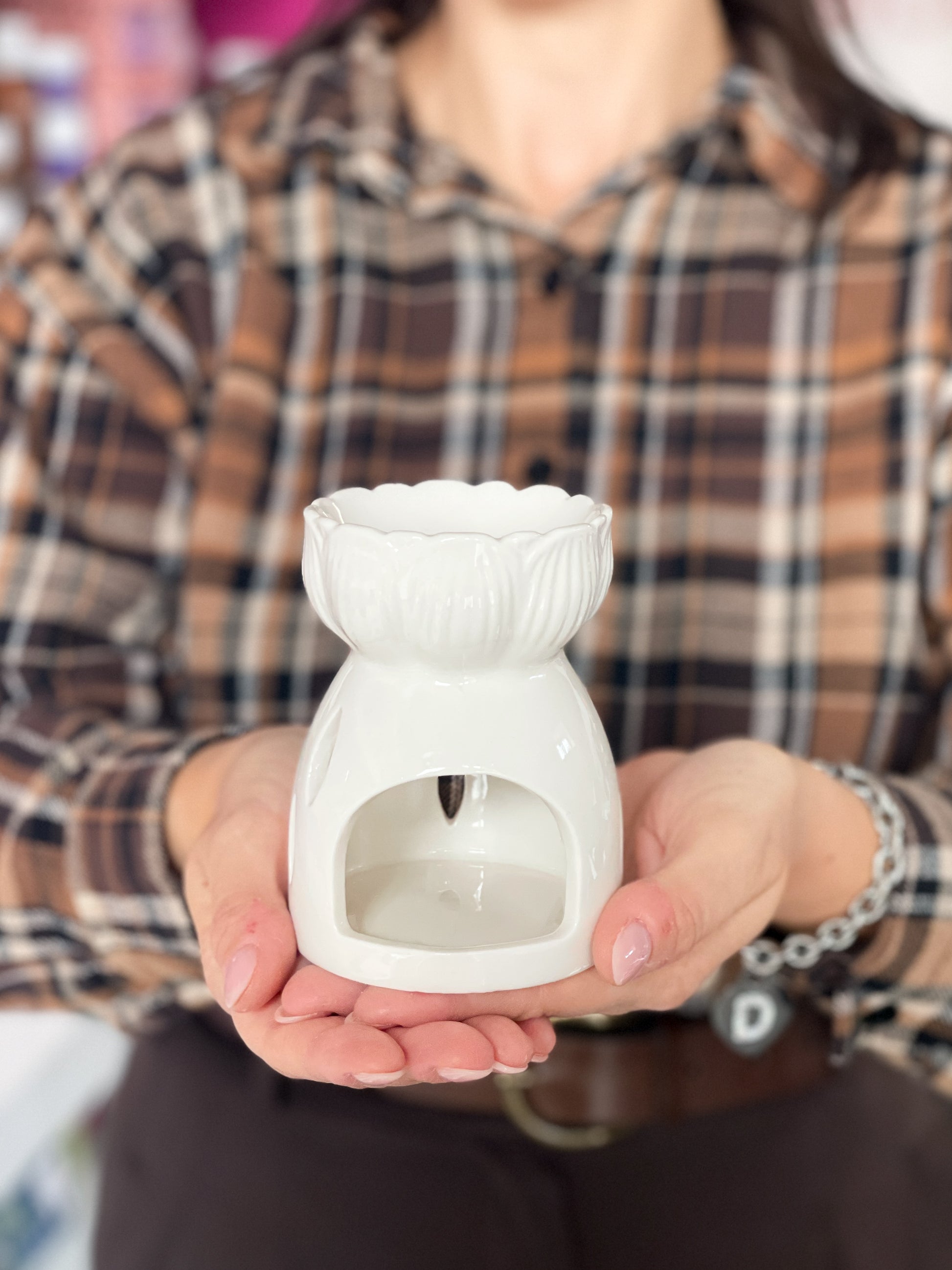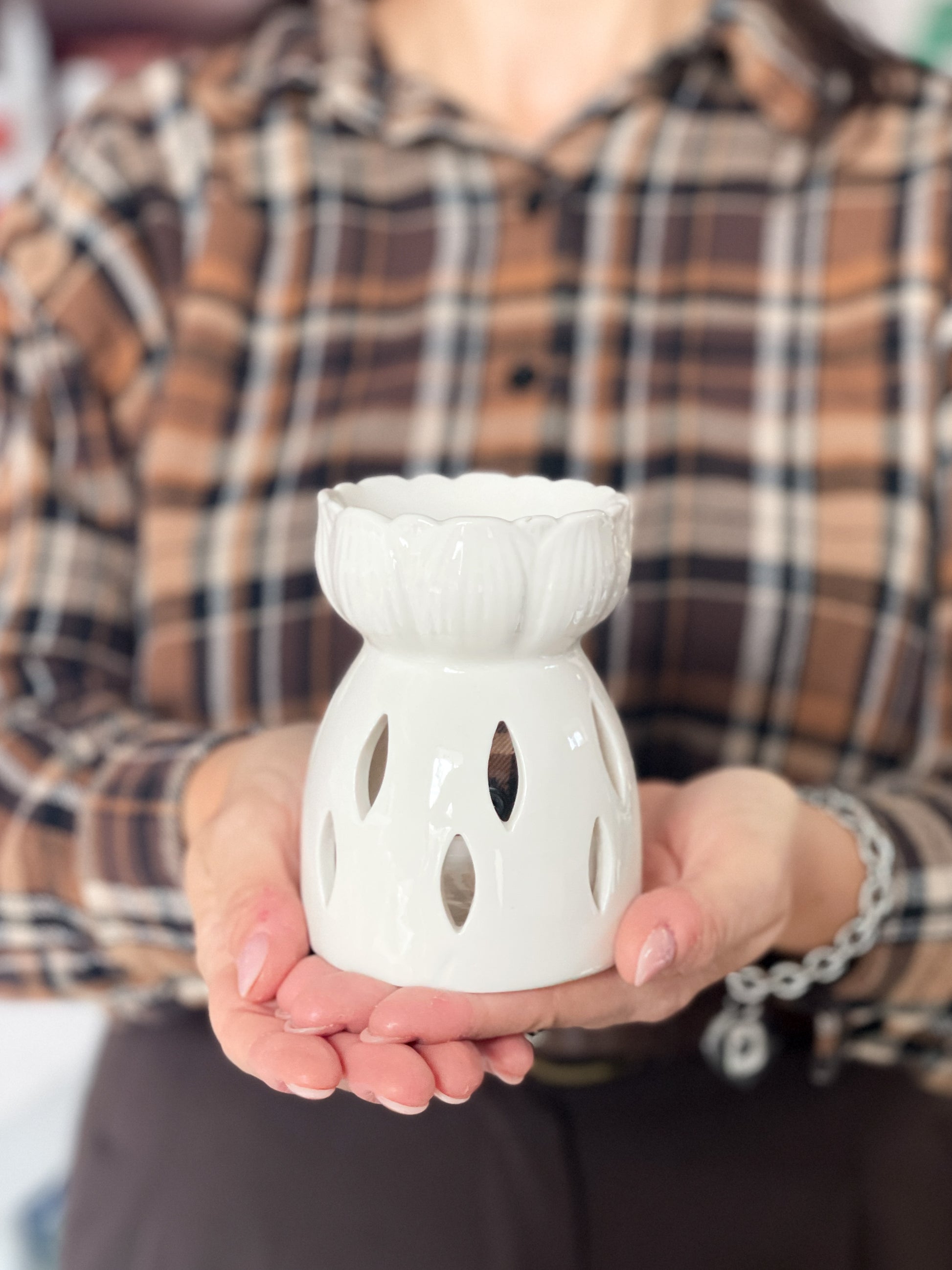 Bruciatore in ceramica per cialde in cera di soia, a forma di fiore bianco