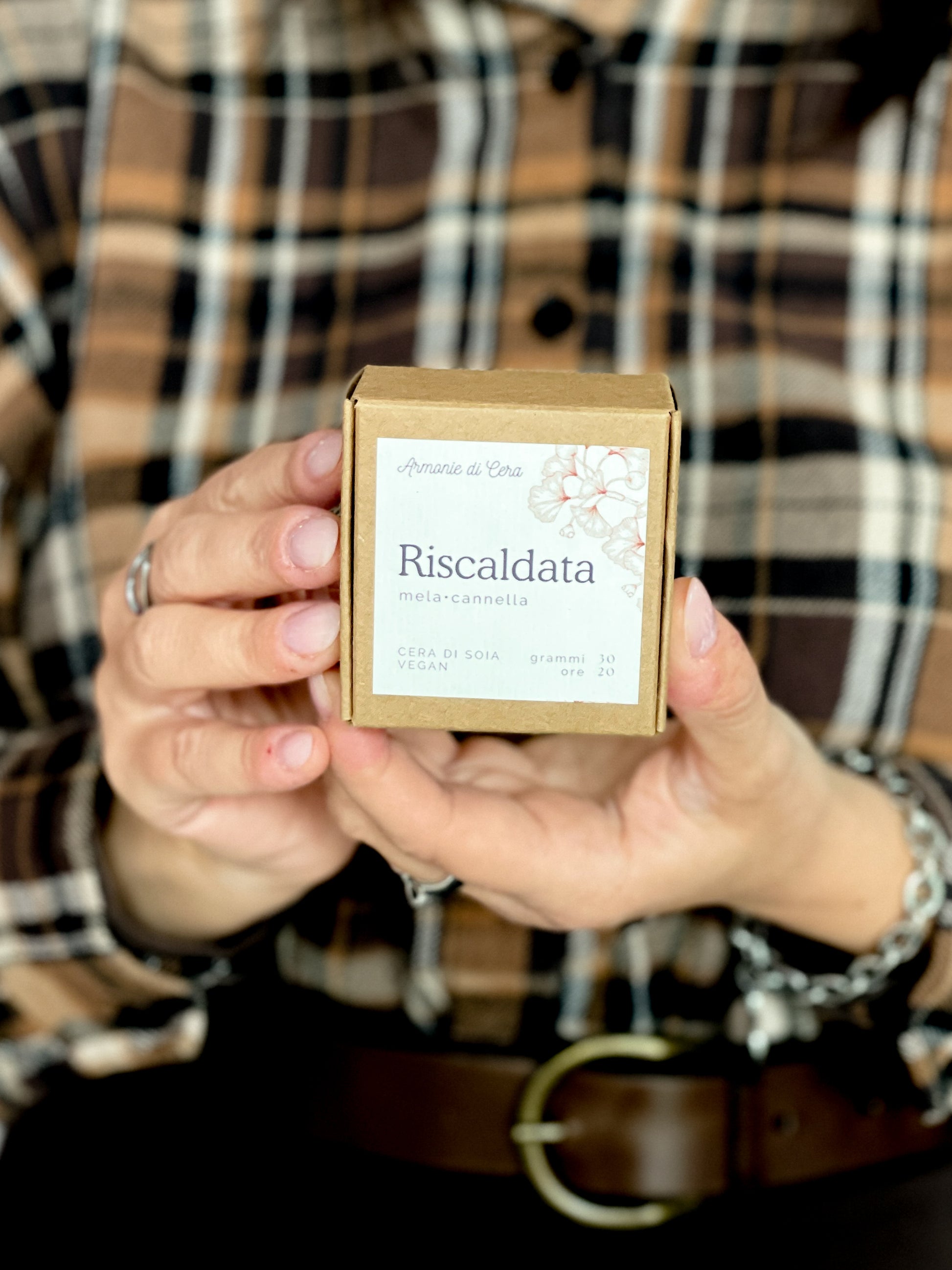 "Riscaldata" è una fragranza calda ed avvolgente che evoca il comfort di una serata invernale accanto al fuoco.