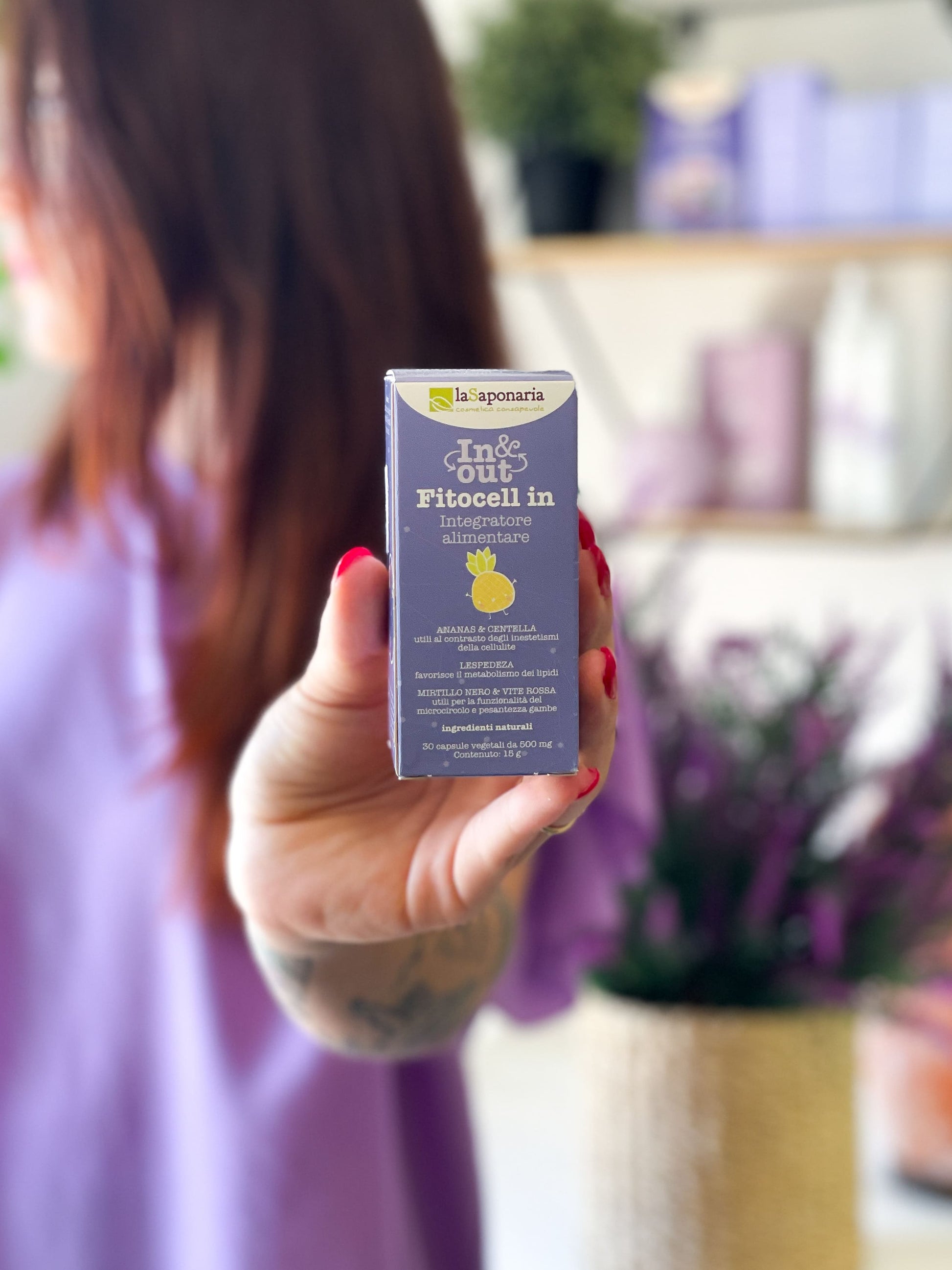 Fitocell è un integratore alimentare bio a base di ananas e bromelina, sostanza estratta dal gambo dell’ananas ad altissima azione antinfiammatoria, fondamentale aiuto nella lotta al ristagno dei liquidi associato agli inestetismi della cellulite e lespedeza, una pianta che contribuisce alle funzioni depurative sull’organismo e che favorisce il metabolismo dei lipidi.