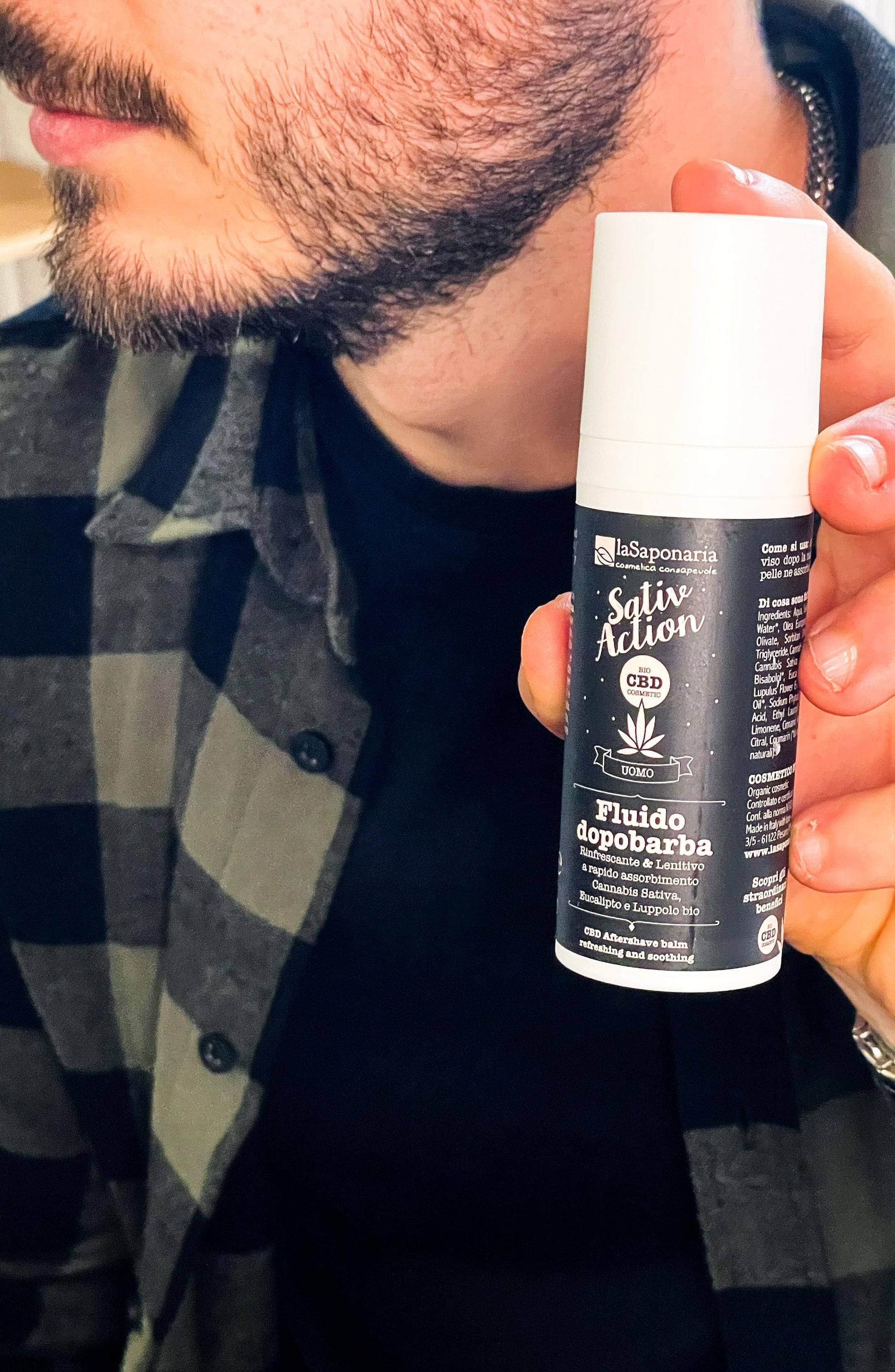 Inci: Aqua, Aloe Barbadensis Leaf Juice*, Coco-Caprylate/Caprate, Polyglyceryl-3 Rice Branate, Hamamelis Virginiana Leaf Water*, Propanediol, Caprylic/Capric Triglyceride, Glycerin, Cannabis Sativa Leaf Extract (contiene CBD), Vigna Aconitifolia Seed Extract, Sodium Hyaluronate, Argania Spinosa Kernel Oil*, Caffeine, Oryza Sativa Powder*, Bisabolol*, Humulus Lupulus Flower Extract*, Tocopheryl Acetate, Tocopherol, Glycine Soja Oil Unsaponifiables, Helianthus Annuus Seed Oil Unsaponifiables, Sodium Phytate, Xanthan Gum, Lactic Acid, Maltodextrin, Parfum**, Benzyl Alcohol, Sodium Dehydroacetate, Linalool, Limonene, Citronellol, Citral, Geraniol (*da agricoltura biologica / **da estratti naturali)