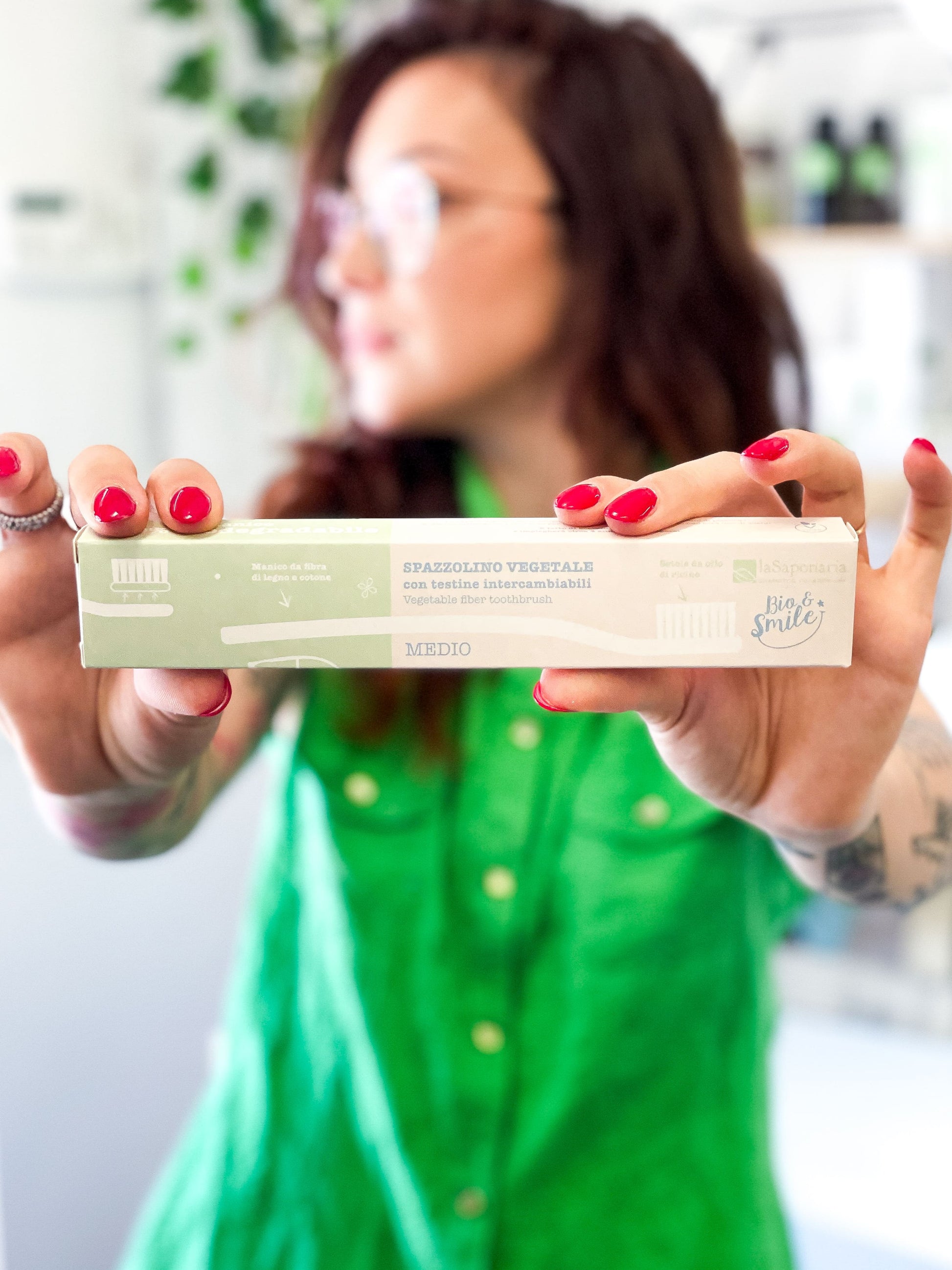 Uno spazzolino tutto al naturale, per rispettare i tuoi denti e l’ambiente! Il manico è realizzato in acetato di cellulosa, un materiale ricavato dalla polpa del legno e dal fiocco di cotone, 100% biodegradabile e sostenibile. Le setole in olio di ricino sono perfette per svolgere una delicata azione pulente su denti e gengive garantendo un’igiene perfetta di tutta la tua bocca! Un concentrato di efficacia ed amore per l’ambiente, racchiuso in un pack di carta riciclabile certificata FSC.
