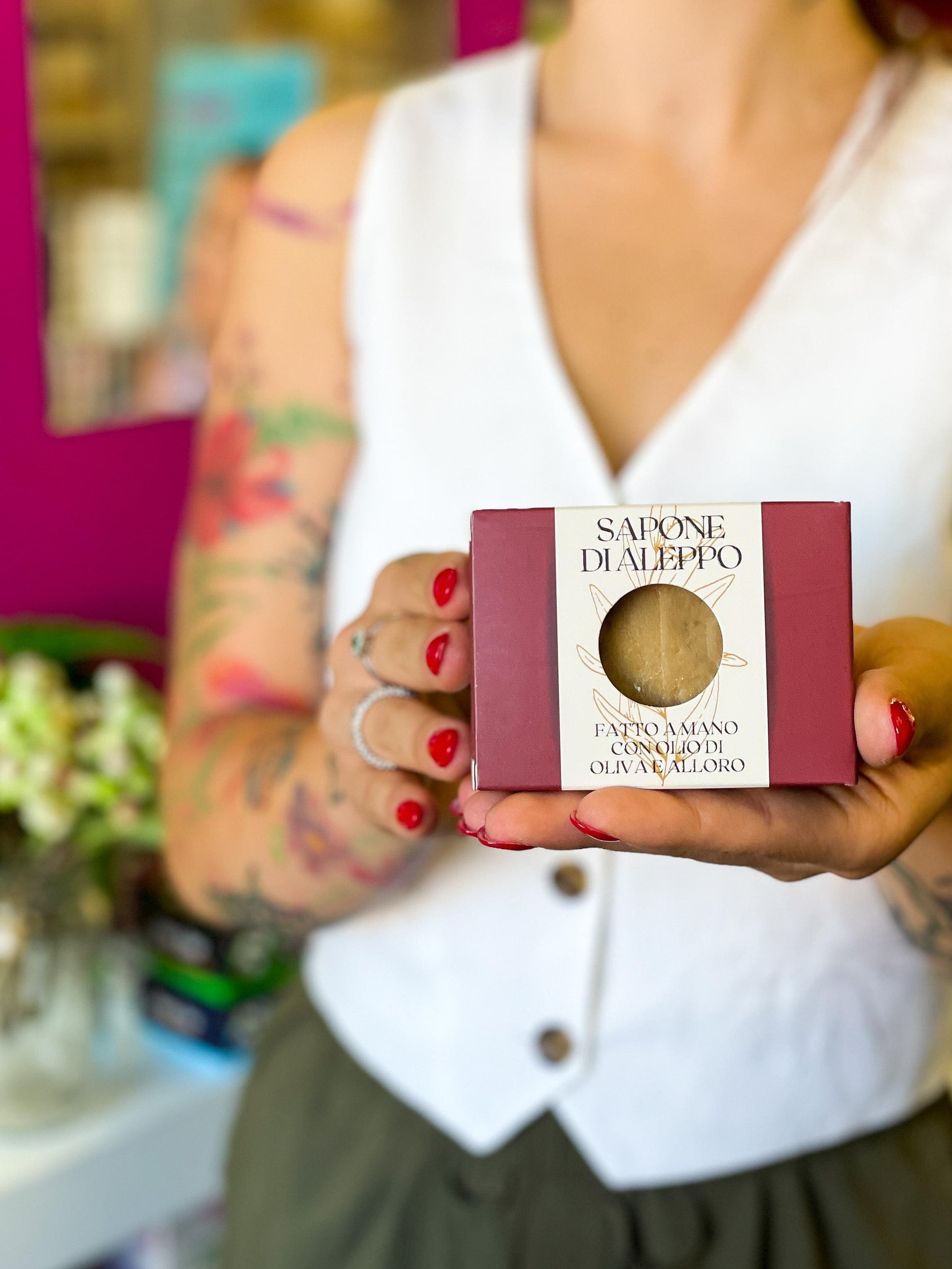 Il sapone di Aleppo è il sapone più antico della storia, fatto solo con olio di oliva e alloro. Sapone con 20% di Alloro, 80% Oliva
